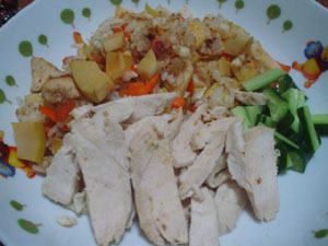 まず、昨日、少し胃を休ませる食事に・・・と、サムゲタン風のおかゆにしました。